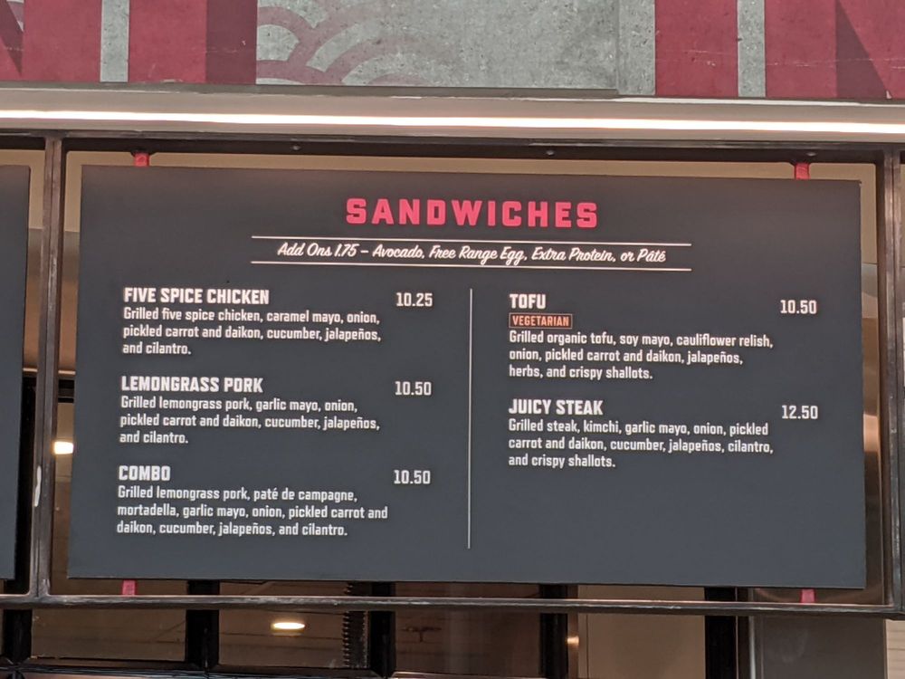 Welcome to Bun Mee, a delightful gem in Terminal 1 of San Francisco International Airport, where Vietnamese flavors meet modern Asian fusion. The menu is a vibrant tapestry of sandwiches that cater to all palates, including enticing vegan and vegetarian options. Each dish is a harmonious blend of fresh ingredients, inspired by traditional Vietnamese recipes.